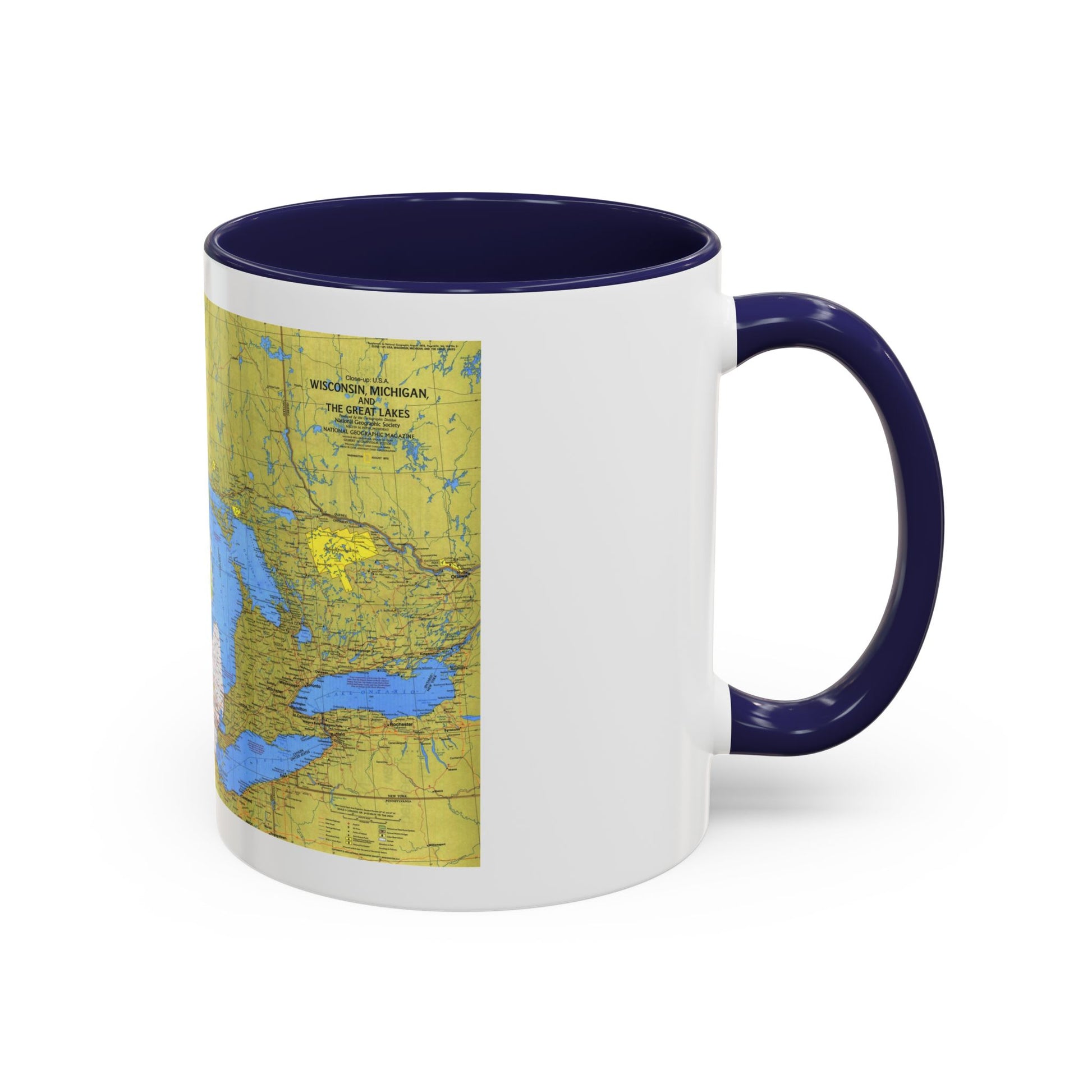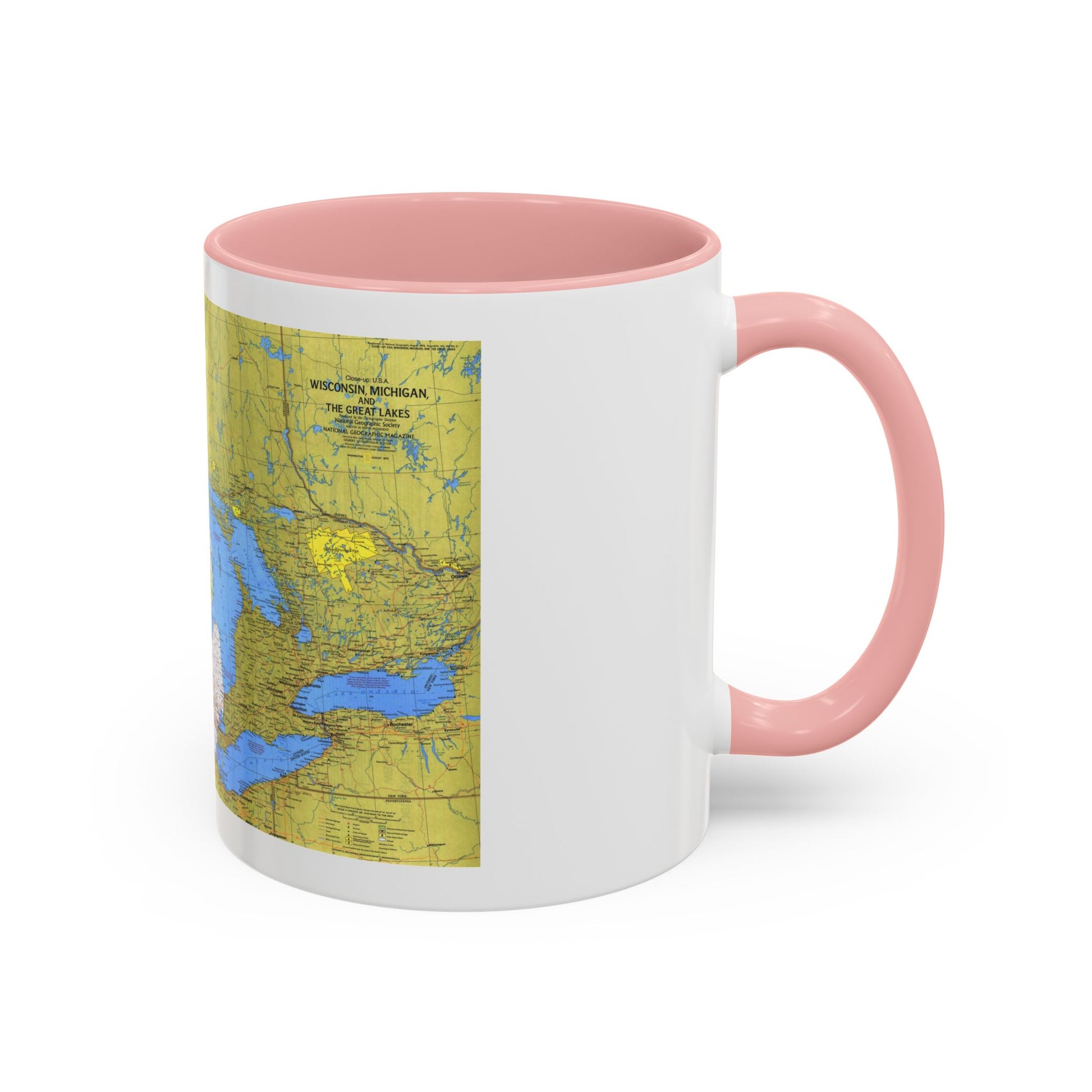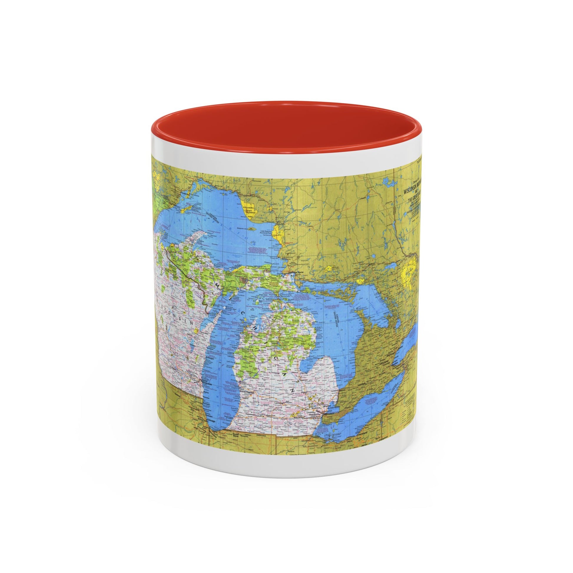 USA - Wisconsin, Michigan ,Great Lakes 1 (1973) (Map) Accent Coffee Mug