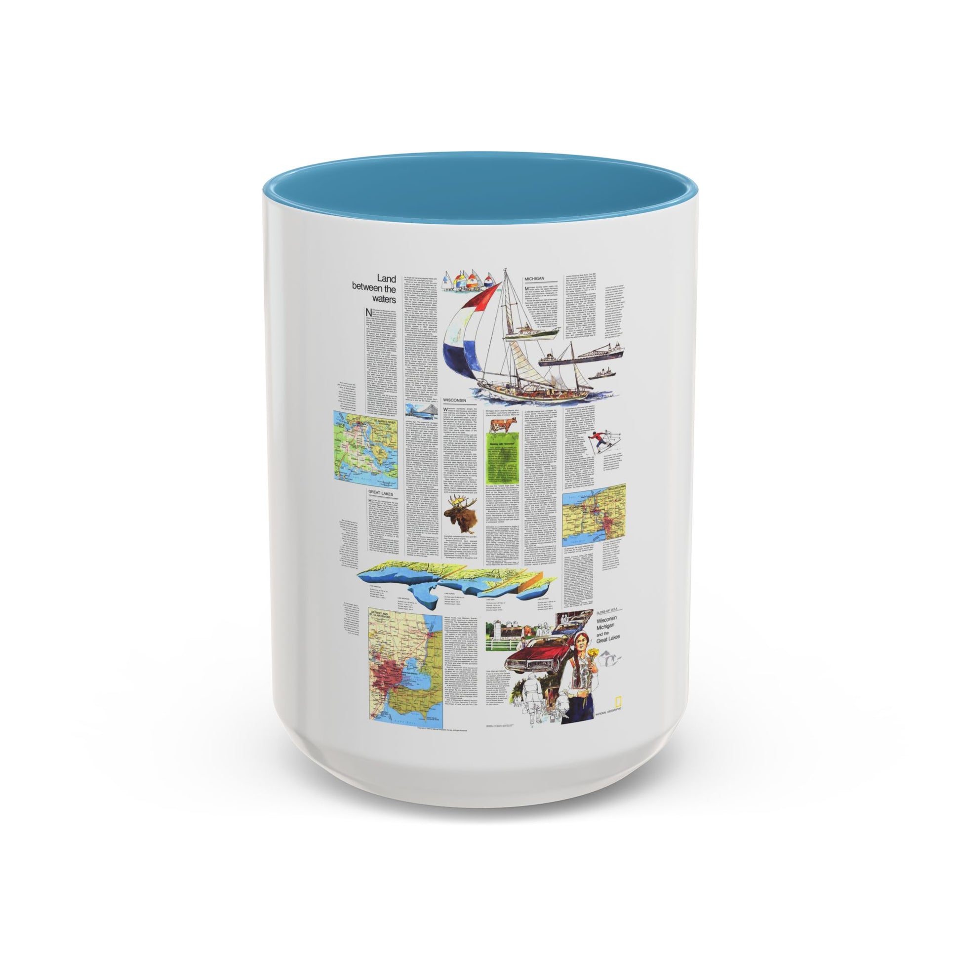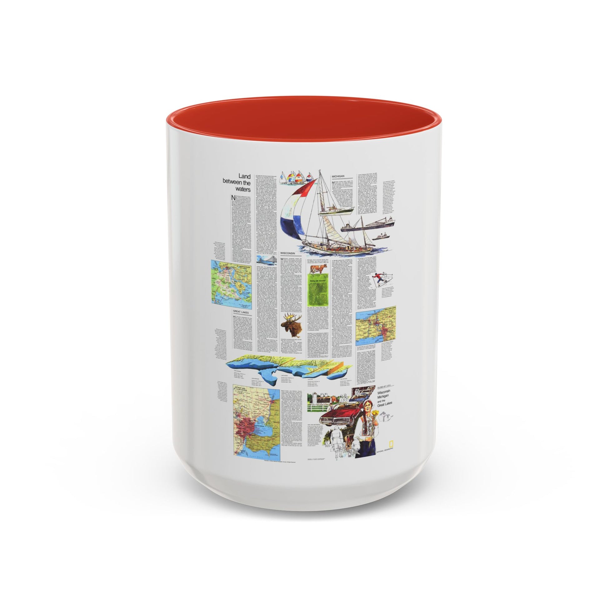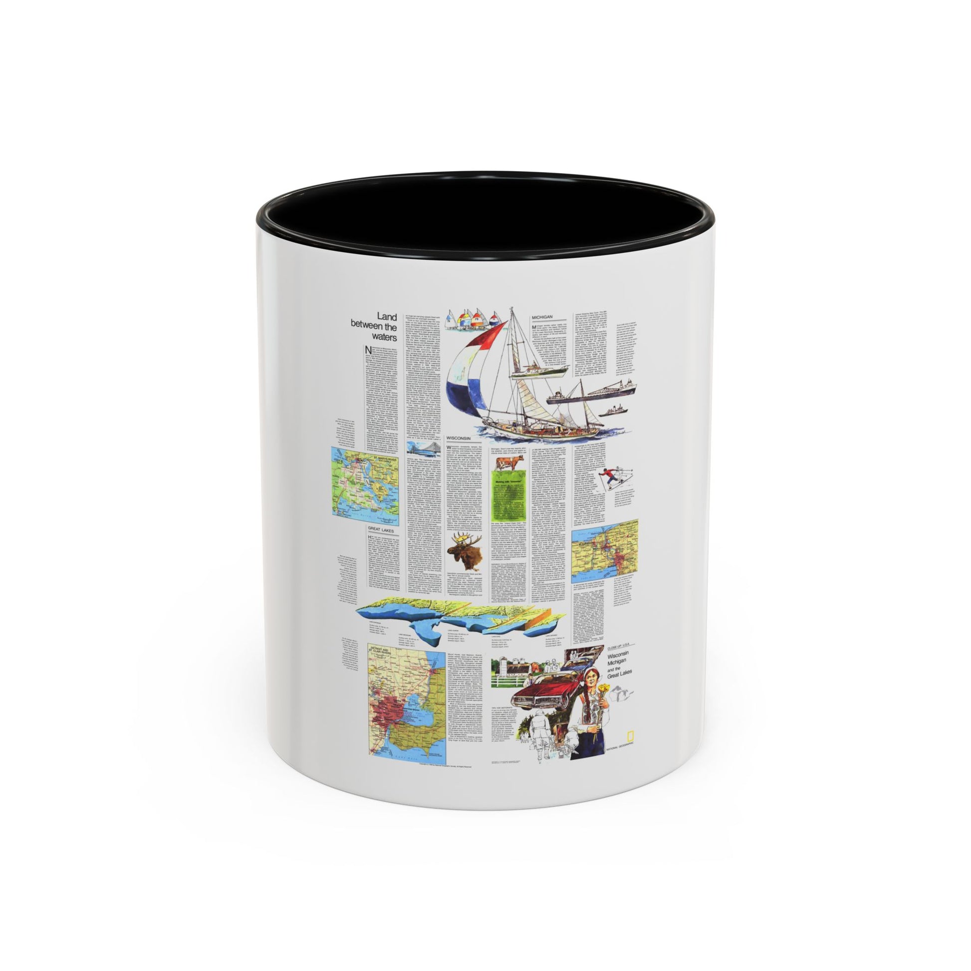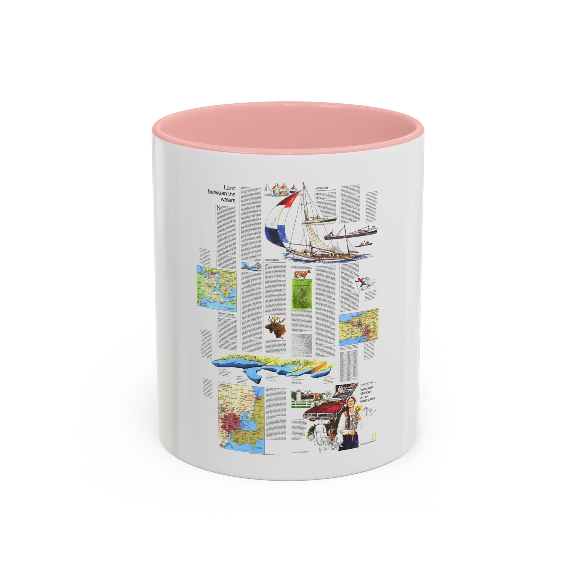 USA - Wisconsin, Michigan ,Great Lakes 2 (1973) (Map) Accent Coffee Mug