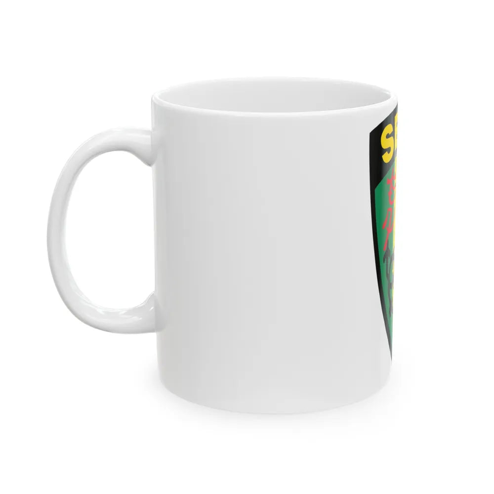 Sturdy white ceramic mugs available in 11 oz (≈330 ml) and 15 oz (≈440 ml), with a glossy finish and comfortable C-handle — microwave and dishwasher safe, and made from lead- and BPA-free materials.