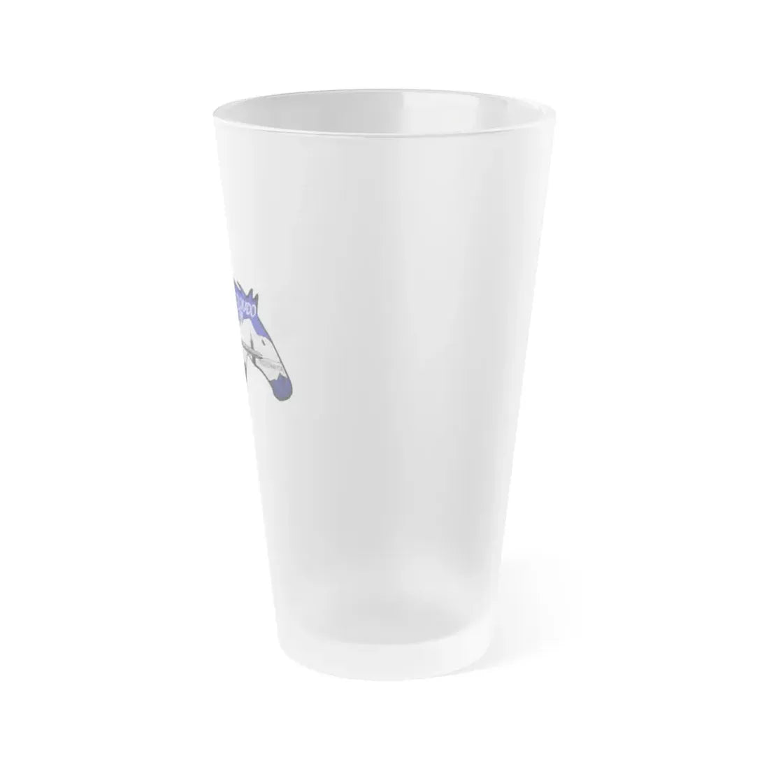 Frosted pint glass (16 oz / ≈0.47 L) with a soft matte finish and semi-translucent, one-sided print. Tough enough for bar and restaurant use, dishwasher safe, and BPA-free — a modern take on classic pintware.