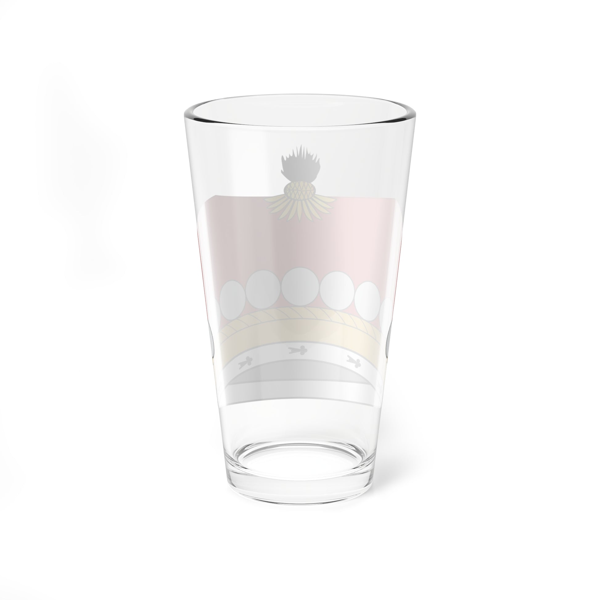 This pint glass showcases the heraldic symbol of a Viscount in the United Kingdom, a mark of nobility rendered in elegant detail.