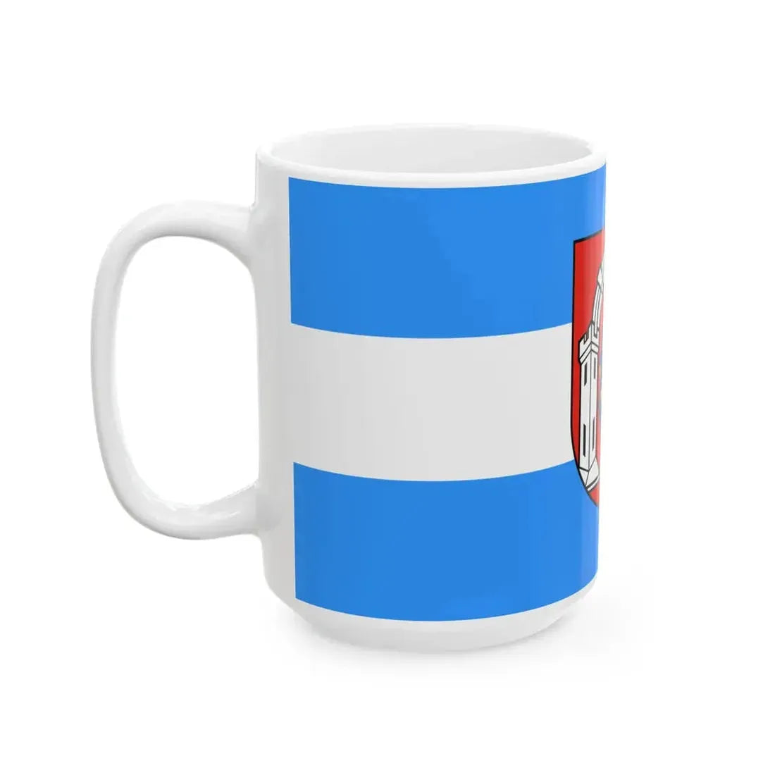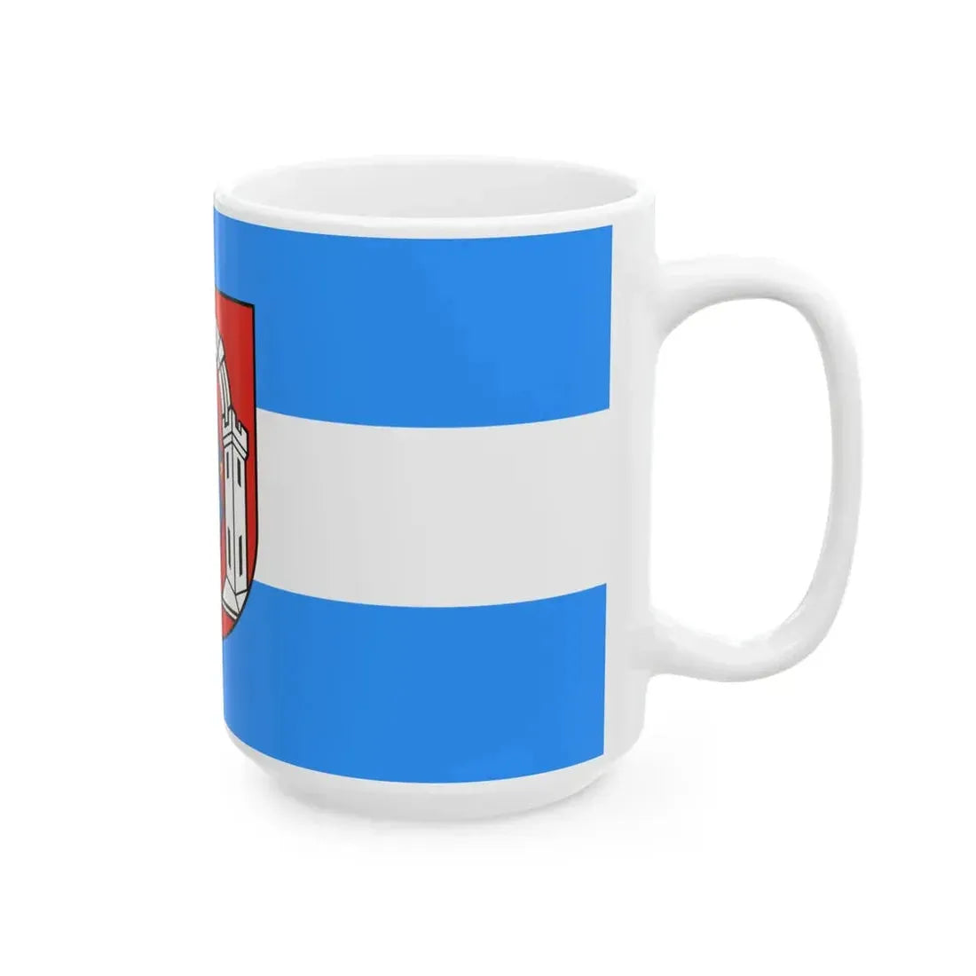 Sturdy white ceramic mugs available in 11 oz (≈330 ml) and 15 oz (≈440 ml), with a glossy finish and comfortable C-handle — microwave and dishwasher safe, and made from lead- and BPA-free materials.