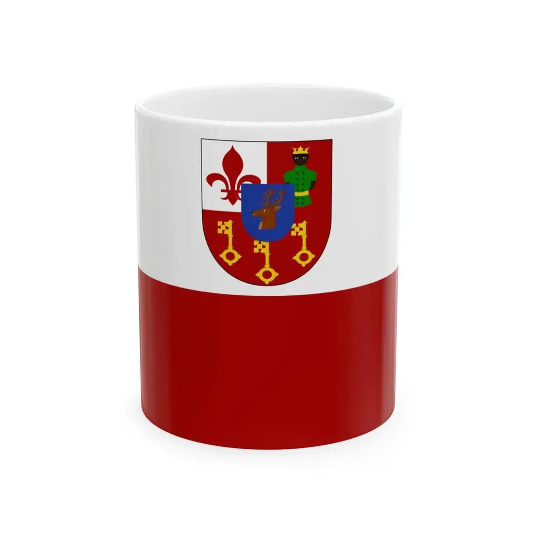 Sturdy white ceramic mugs available in 11 oz (≈330 ml) and 15 oz (≈440 ml), with a glossy finish and comfortable C-handle — microwave and dishwasher safe, and made from lead- and BPA-free materials.