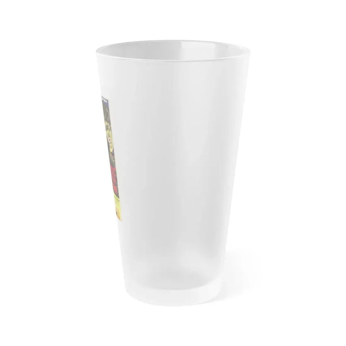 Frosted pint glass (16 oz / ≈0.47 L) with a soft matte finish and semi-translucent, one-sided print. Tough enough for bar and restaurant use, dishwasher safe, and BPA-free — a modern take on classic pintware.
