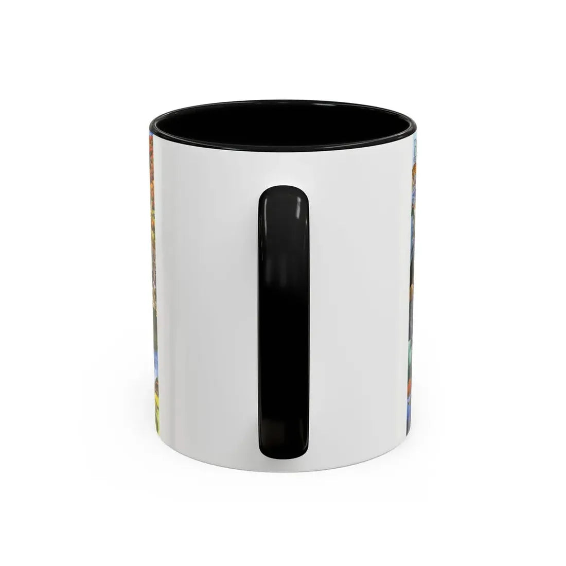 Accent ceramic mugs with a glossy white exterior and a colored interior & handle. Offered in 11 oz (≈330 ml) and 15 oz (≈440 ml), these mugs pair strong visual contrast with everyday durability — lead- and BPA-free.