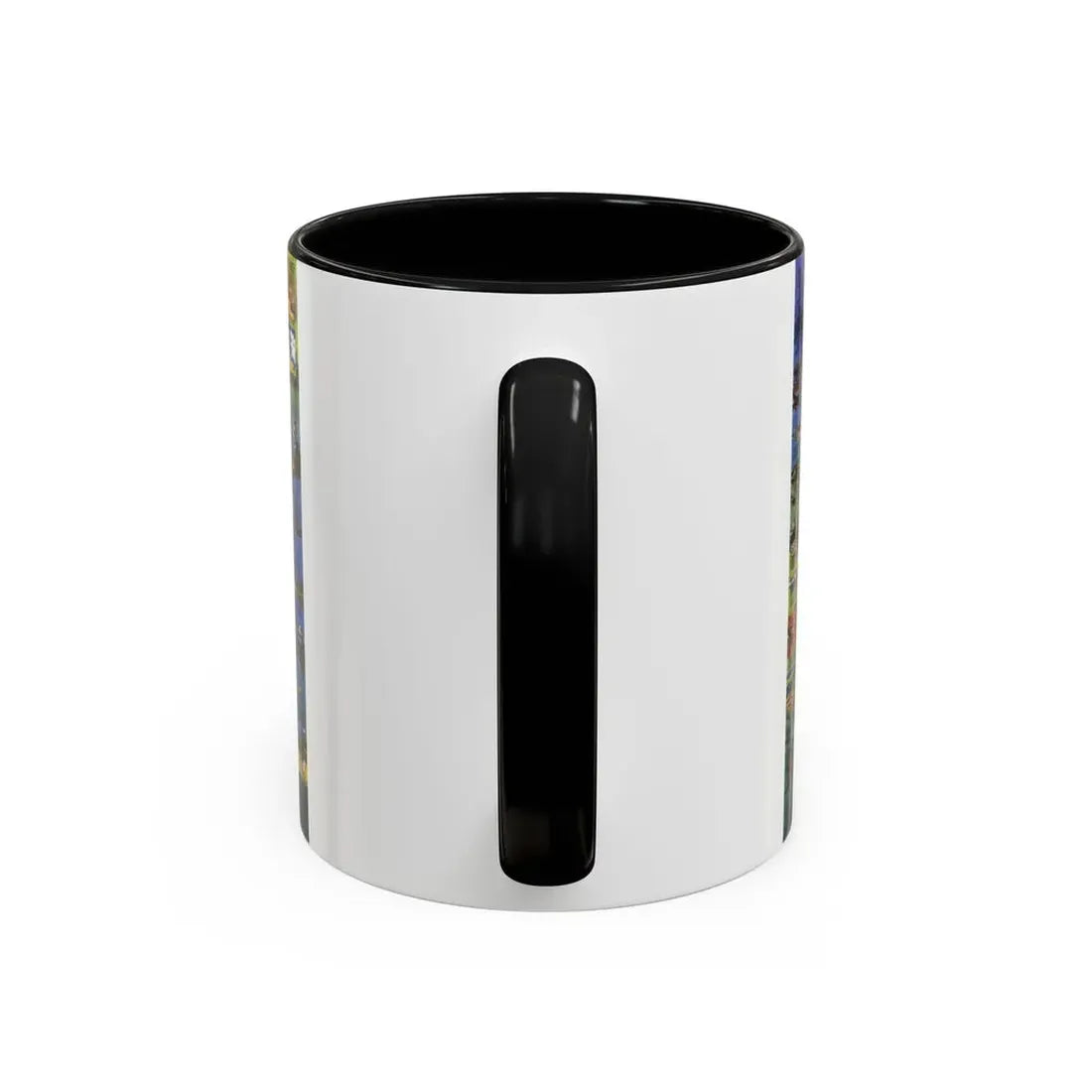 Accent ceramic mugs with a glossy white exterior and a colored interior & handle. Offered in 11 oz (≈330 ml) and 15 oz (≈440 ml), these mugs pair strong visual contrast with everyday durability — lead- and BPA-free.