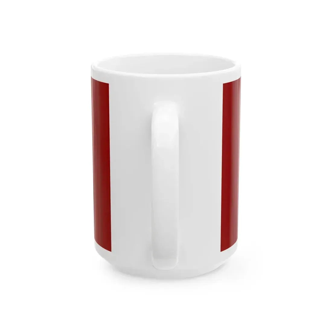 Sturdy white ceramic mugs available in 11 oz (≈330 ml) and 15 oz (≈440 ml), with a glossy finish and comfortable C-handle — microwave and dishwasher safe, and made from lead- and BPA-free materials.