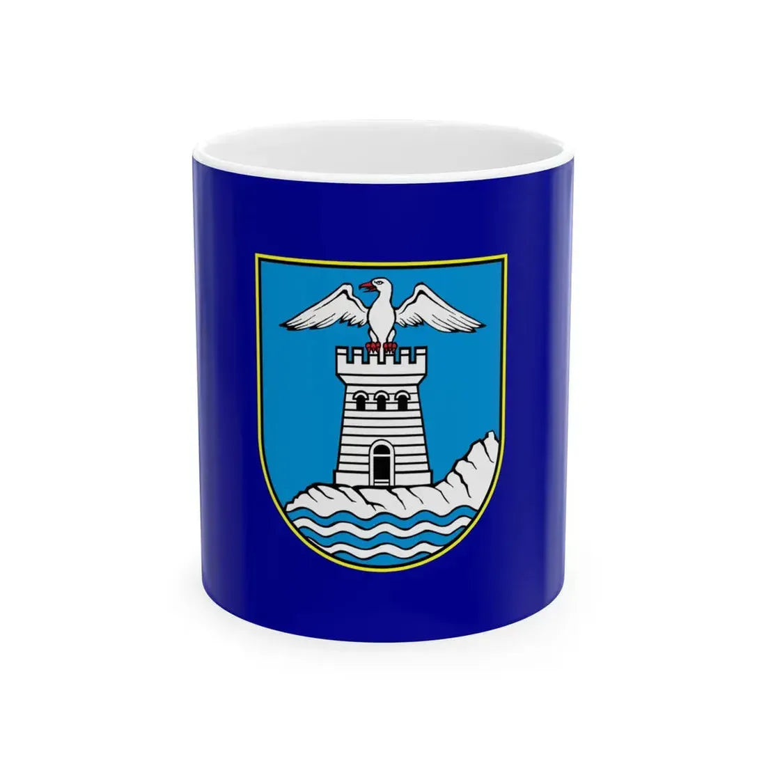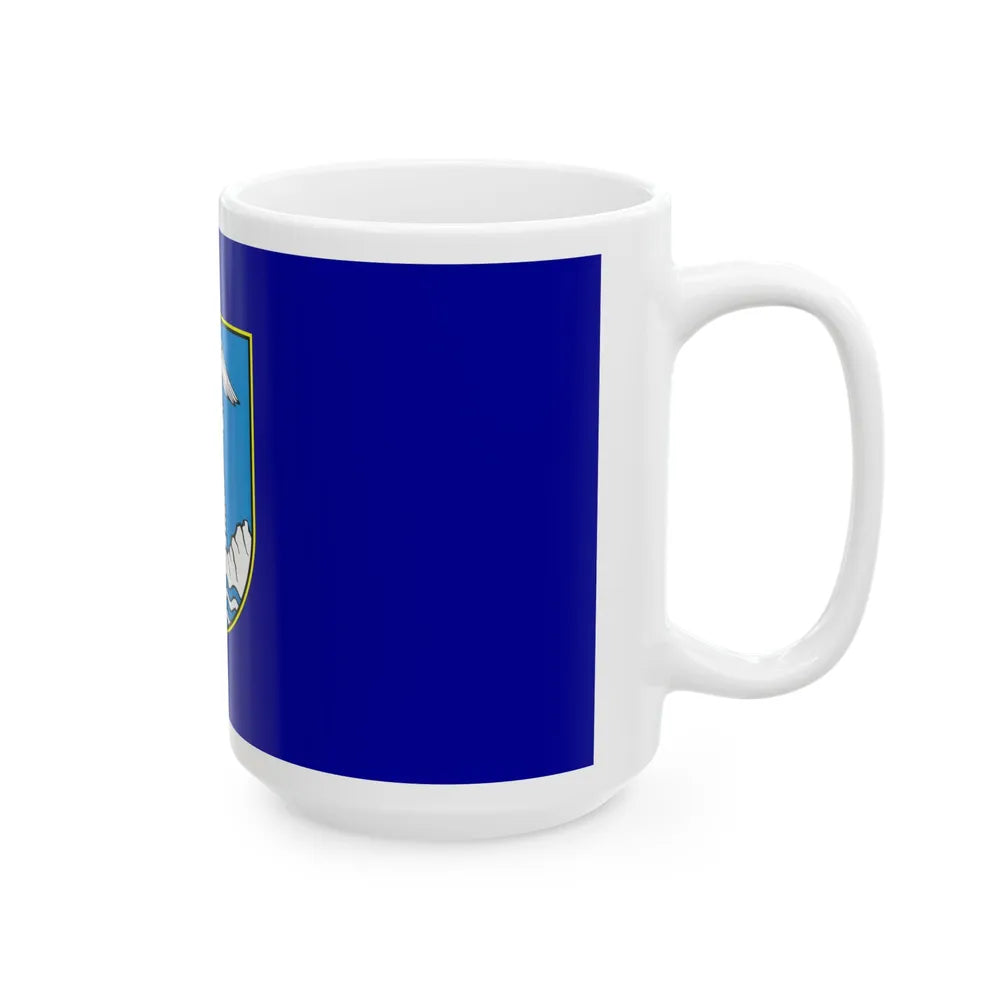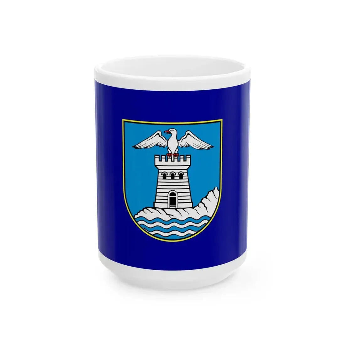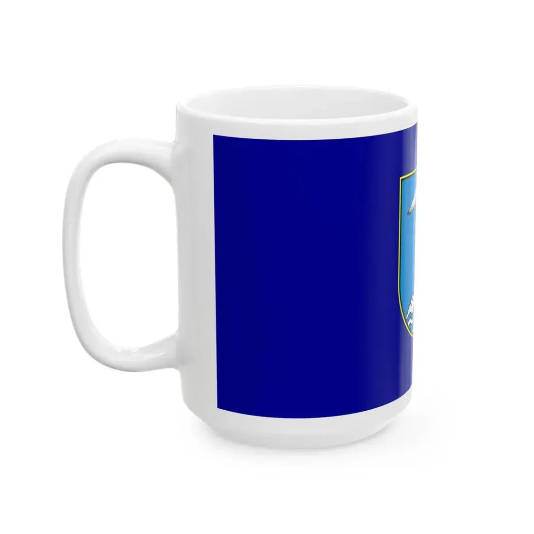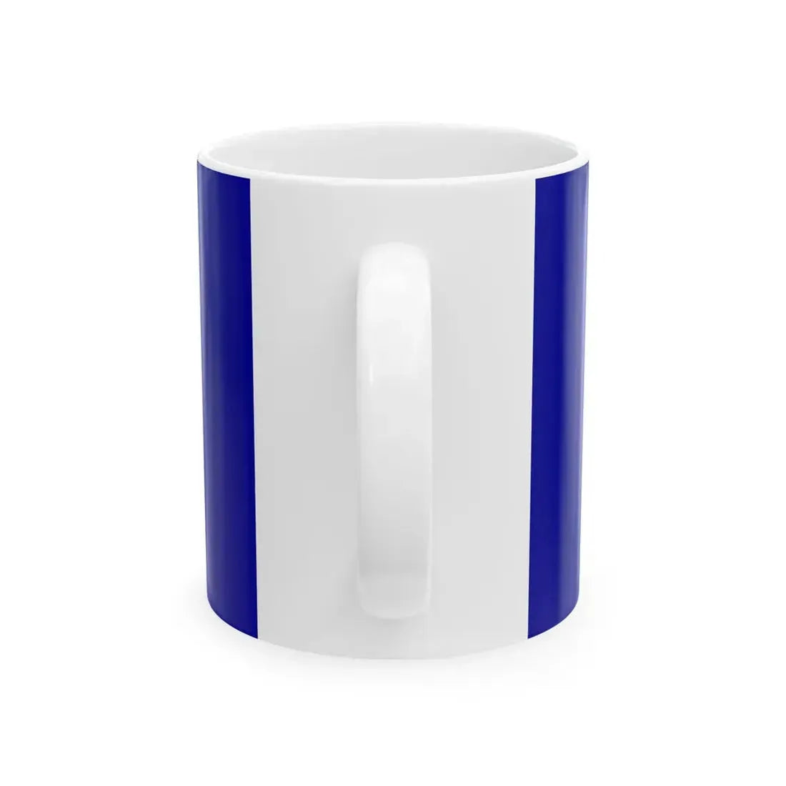 Sturdy white ceramic mugs available in 11 oz (≈330 ml) and 15 oz (≈440 ml), with a glossy finish and comfortable C-handle — microwave and dishwasher safe, and made from lead- and BPA-free materials.