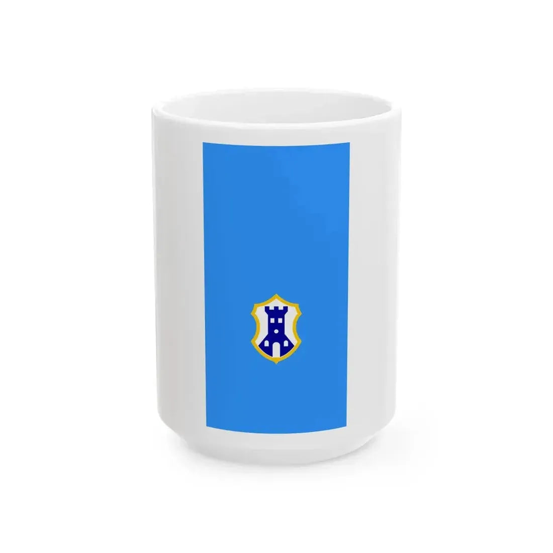 Sturdy white ceramic mugs available in 11 oz (≈330 ml) and 15 oz (≈440 ml), with a glossy finish and comfortable C-handle — microwave and dishwasher safe, and made from lead- and BPA-free materials.