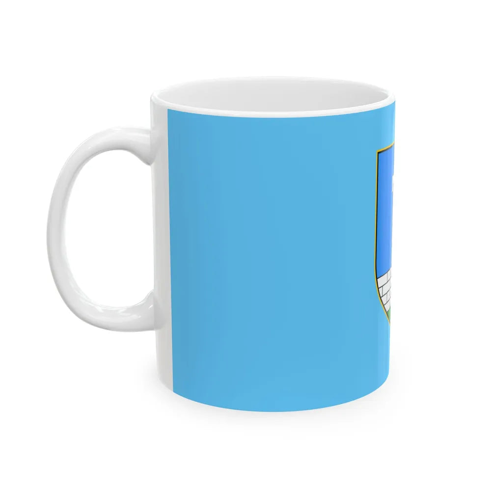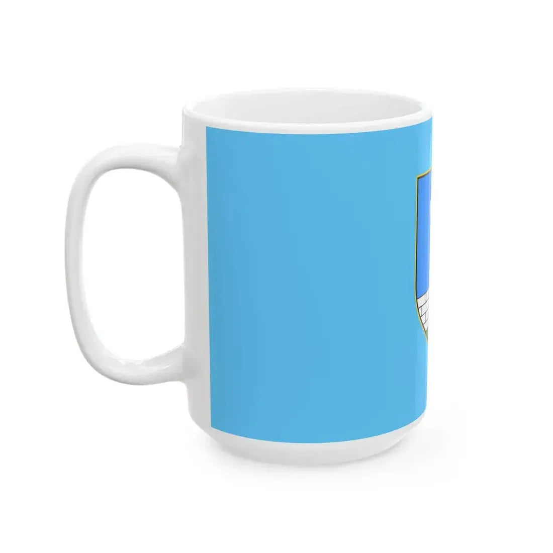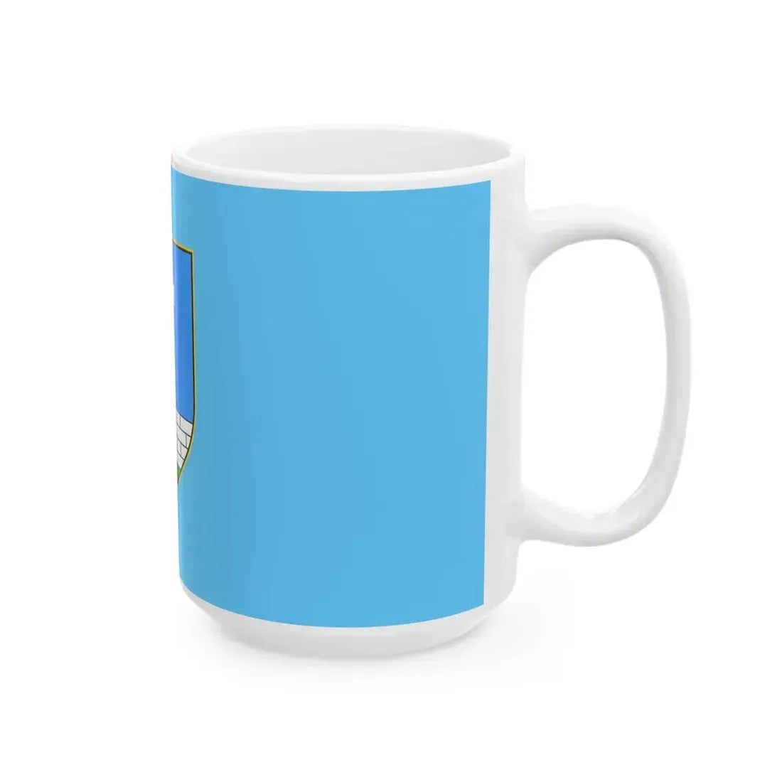 Sturdy white ceramic mugs available in 11 oz (≈330 ml) and 15 oz (≈440 ml), with a glossy finish and comfortable C-handle — microwave and dishwasher safe, and made from lead- and BPA-free materials.